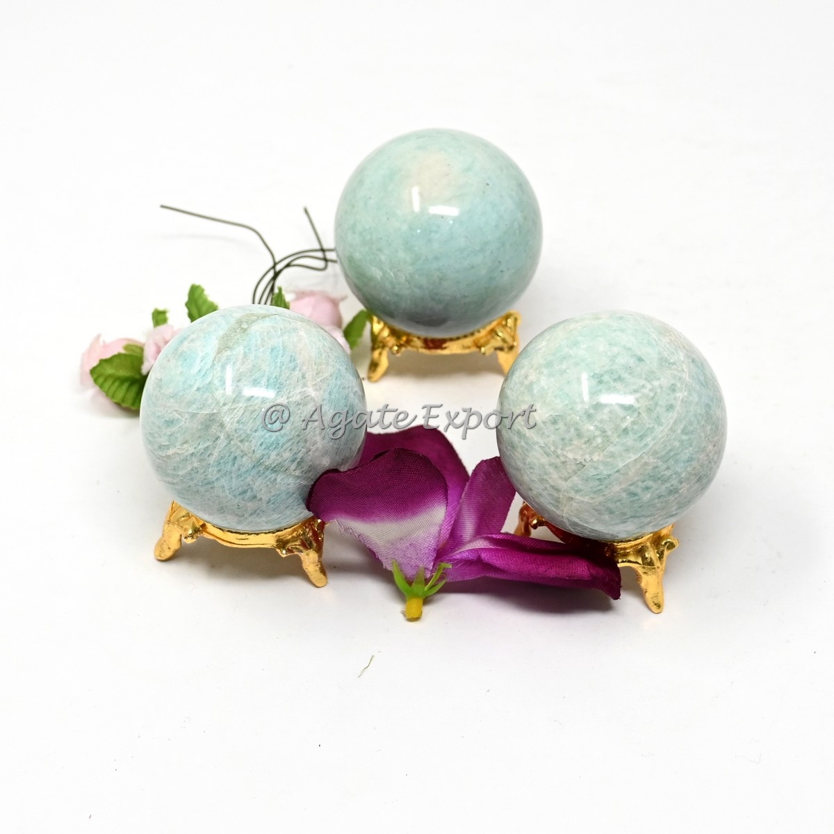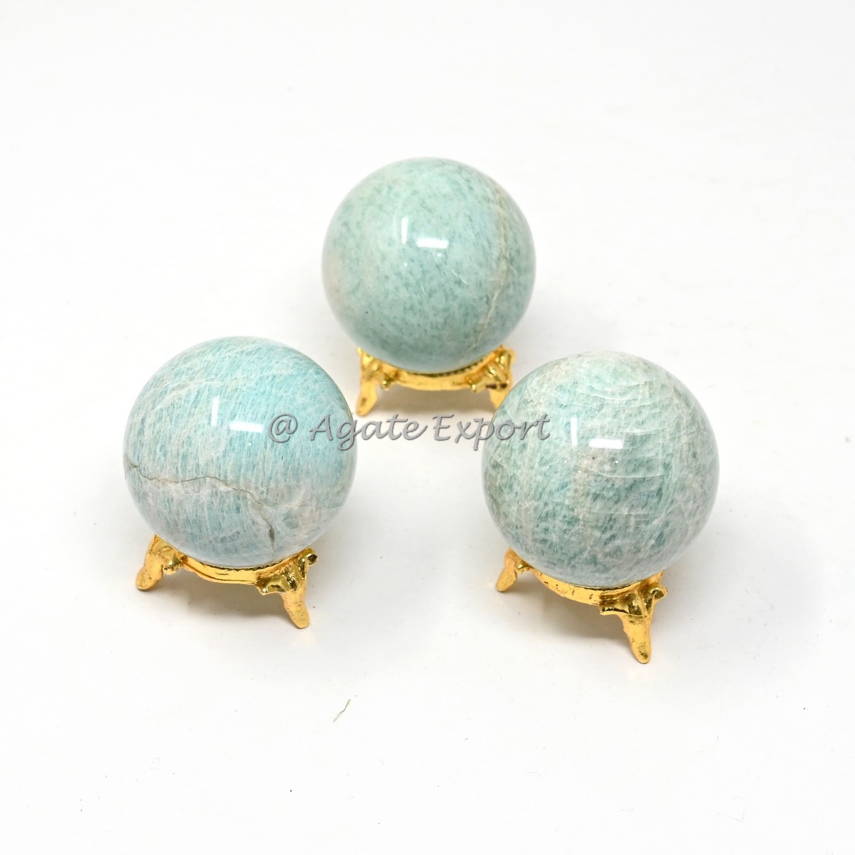 The Amazonite Sphere is a stunning gemstone, known for its soothing blue-green color and powerful healing properties. Measuring between 40-65mm in diameter and weighing approximately 200-400 grams, this polished sphere exudes a calming and uplifting energy. Amazonite soothes anxiety and promotes emotional balance. Its gentle energy calms the mind and alleviates stress, making it an excellent companion for meditation and relaxation. Meditating with the Amazonite Sphere helps to balance the Heart and Throat Chakras, fostering clear communication and emotional expression. This balance encourages speaking your truth with confidence and compassion. The calming properties of Amazonite make it a powerful tool for healing emotional wounds and releasing negative patterns. It dispels fear and worry, promoting peace and tranquility. This gemstone benefits those going through periods of change or emotional upheaval, as it provides support and stability. Amazonite enhances creativity and inspires new ideas. Its energy encourages thinking outside the box and exploring new possibilities. Placing the Amazonite Sphere in your workspace, meditation area, or any environment where you seek calm and inspiration creates a harmonious and uplifting atmosphere. Its serene beauty and powerful healing properties make it a valuable addition to any crystal collection. Embrace the soothing energy of Amazonite to promote emotional balance, creativity, and overall well-being.