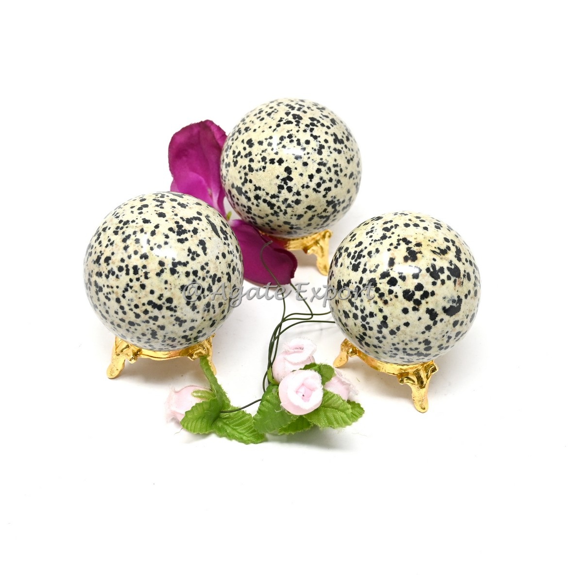 Dalmatian Jasper Spheres present the sporty look of black spots against a beige colored surface. Enjoy its playful energies while it also brings about grounded feelings of happiness. Being highly polished, it comes in smooth finishes. Meditate, achieve balance emotionally, or decorate uniquely by including this gem in your collection.
