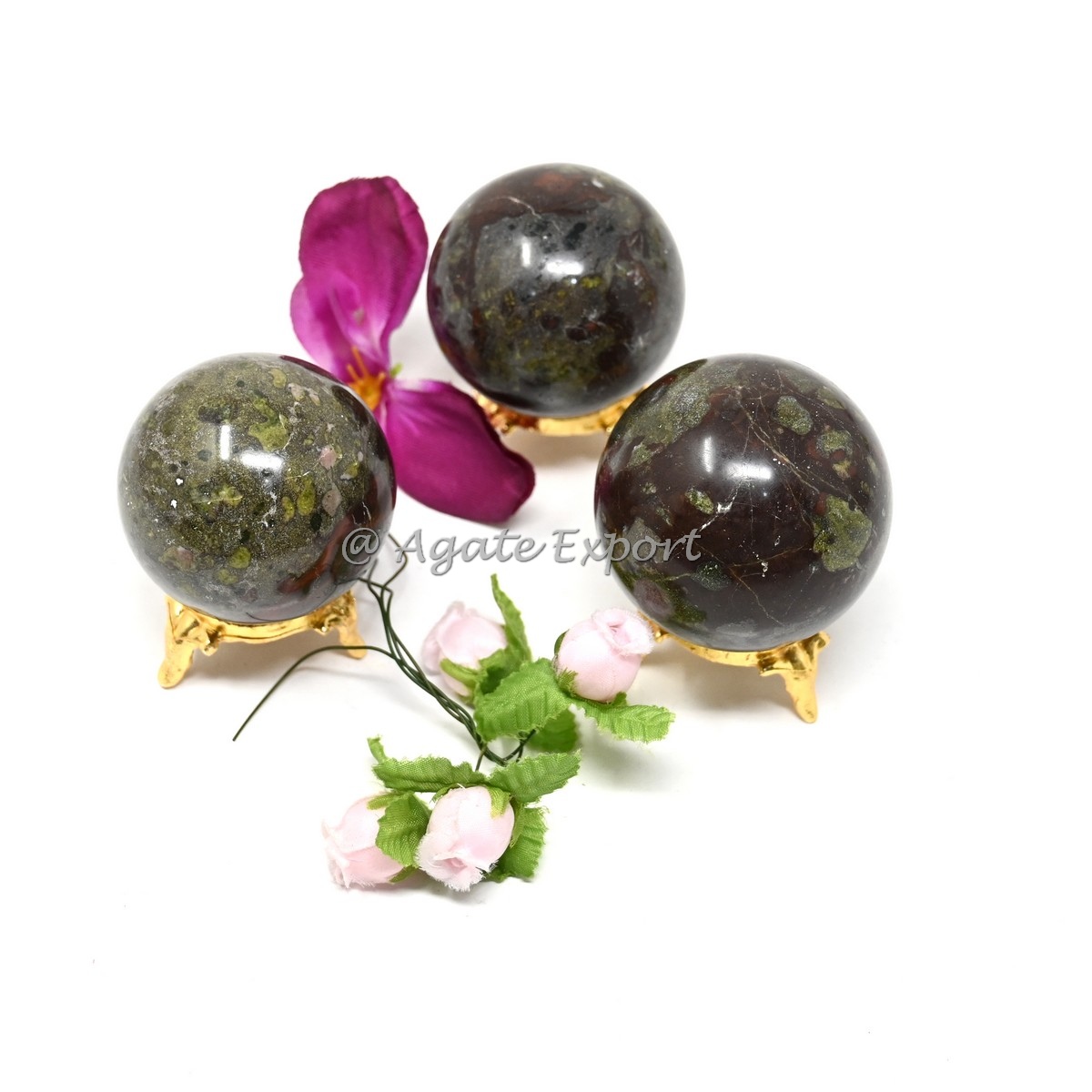 Dragon Bloodstone Spheres feature a striking mix of deep green and red hues, symbolizing strength and courage. Polished to perfection, they are ideal for grounding, vitality, and spiritual protection. Perfect for meditation or display, they are a unique addition to any crystal collection.