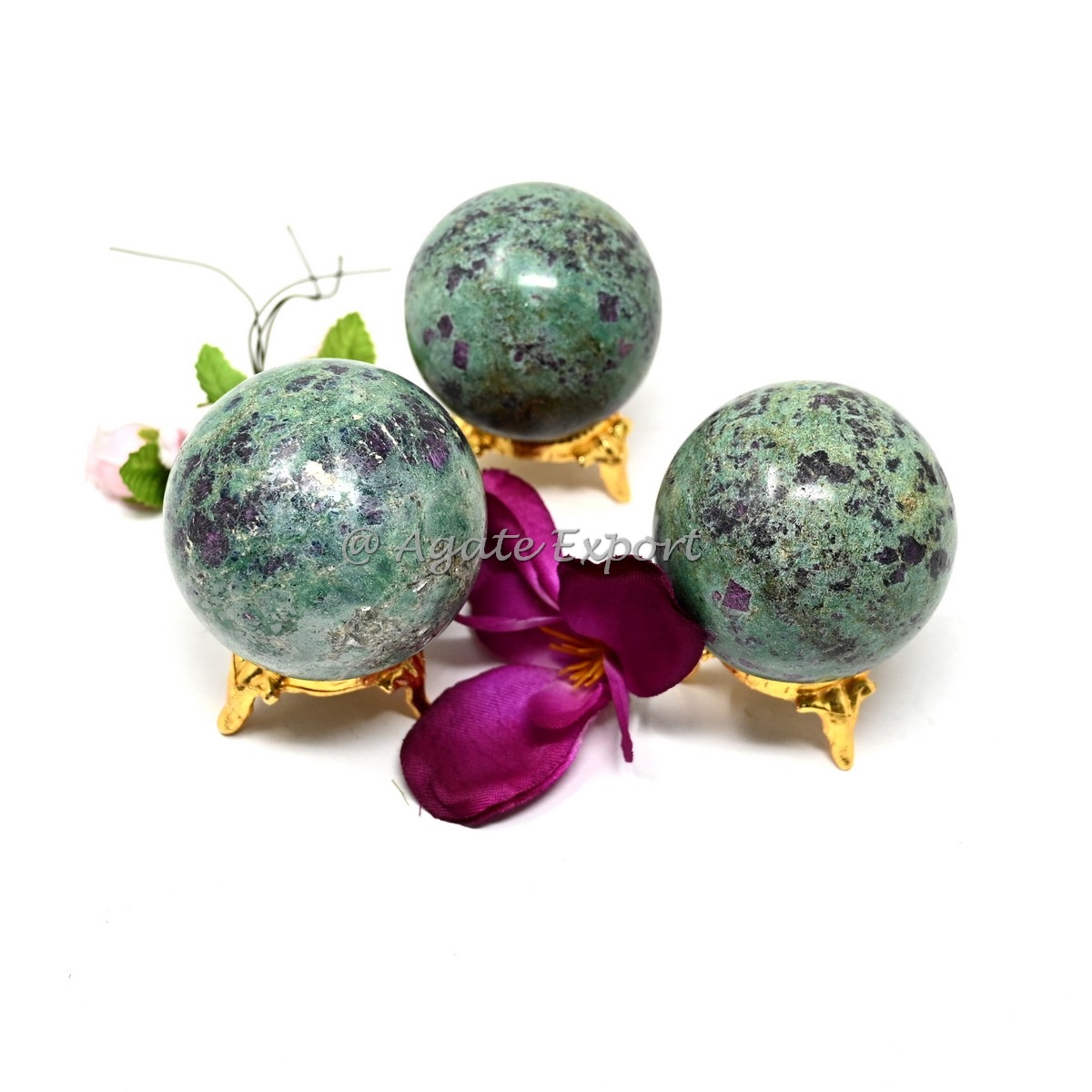 Ruby Fuchsite Sphere An unique combination of vibrant ruby with the calming aspects of Ruby, it has been polished to perfection, to enhance energy, intuition, and balance. The spheres are best for meditation purposes or just displaying in any collection.
