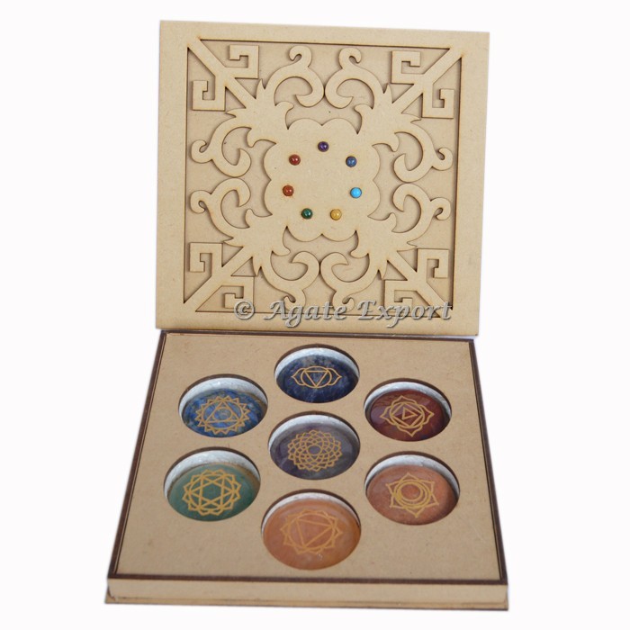 Buy Online Bulk Chakra Stones, Chakra Set. Engraved Stones With Nice Quality Boxes. Seven Chakra Set With Clatic Chakra Gift Box